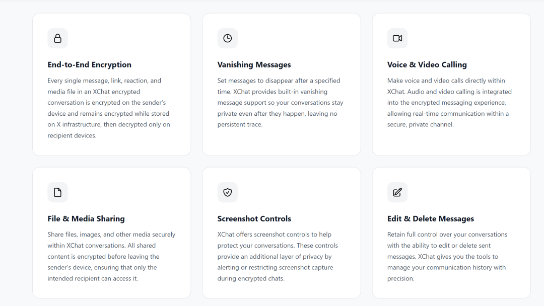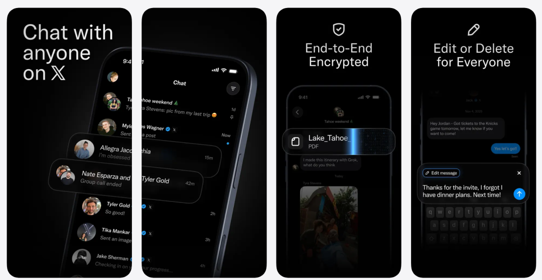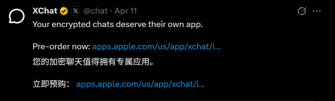 从官方释出的诳骗音问来看,XChat中枢主打加密聊天,其官宣推文可谓很是单刀直入: